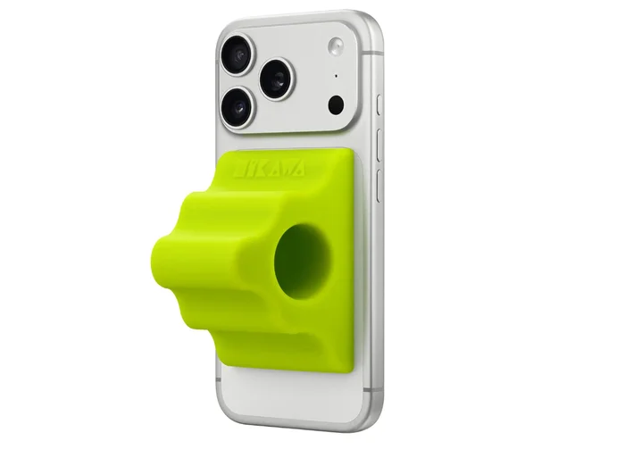 Sản phẩm làm từ silicone mềm mại, gắn vào iPhone bằng lực từ tính.