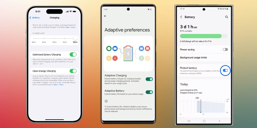 Samsung cung cấp tính năng tương tự gọi là Bảo Vệ Pin (Battery Protect). Khi được bật, nó giới hạn mức sạc tối đa ở 85%, giúp giảm áp lực trong các phiên sạc kéo dài.