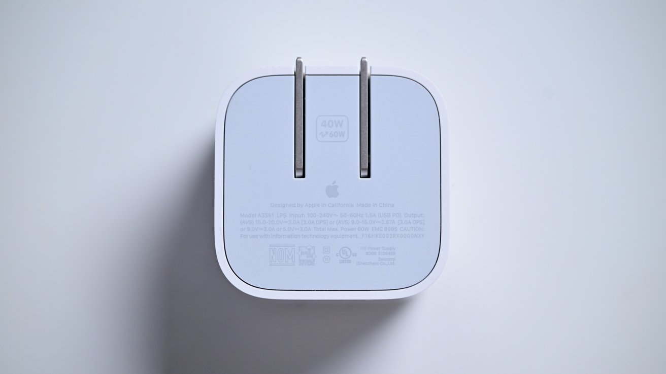 Củ sạc mới của Apple có tên gọi khá lạ là Apple 40W Dynamic Power Adapter with 60W Max. Về cơ bản, đây là một củ sạc 40W nhưng có khả năng đẩy công suất đầu ra lên đến 60W khi cần thiết. Đây được xem là một trong những bộ sạc đầu tiên sử dụng công nghệ USB PD 3.2 SPR AVS.