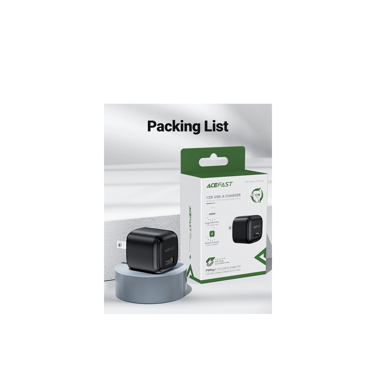 Sạc ACEFAST DA1, 1 cổng USB-A 12W, phích cắm US