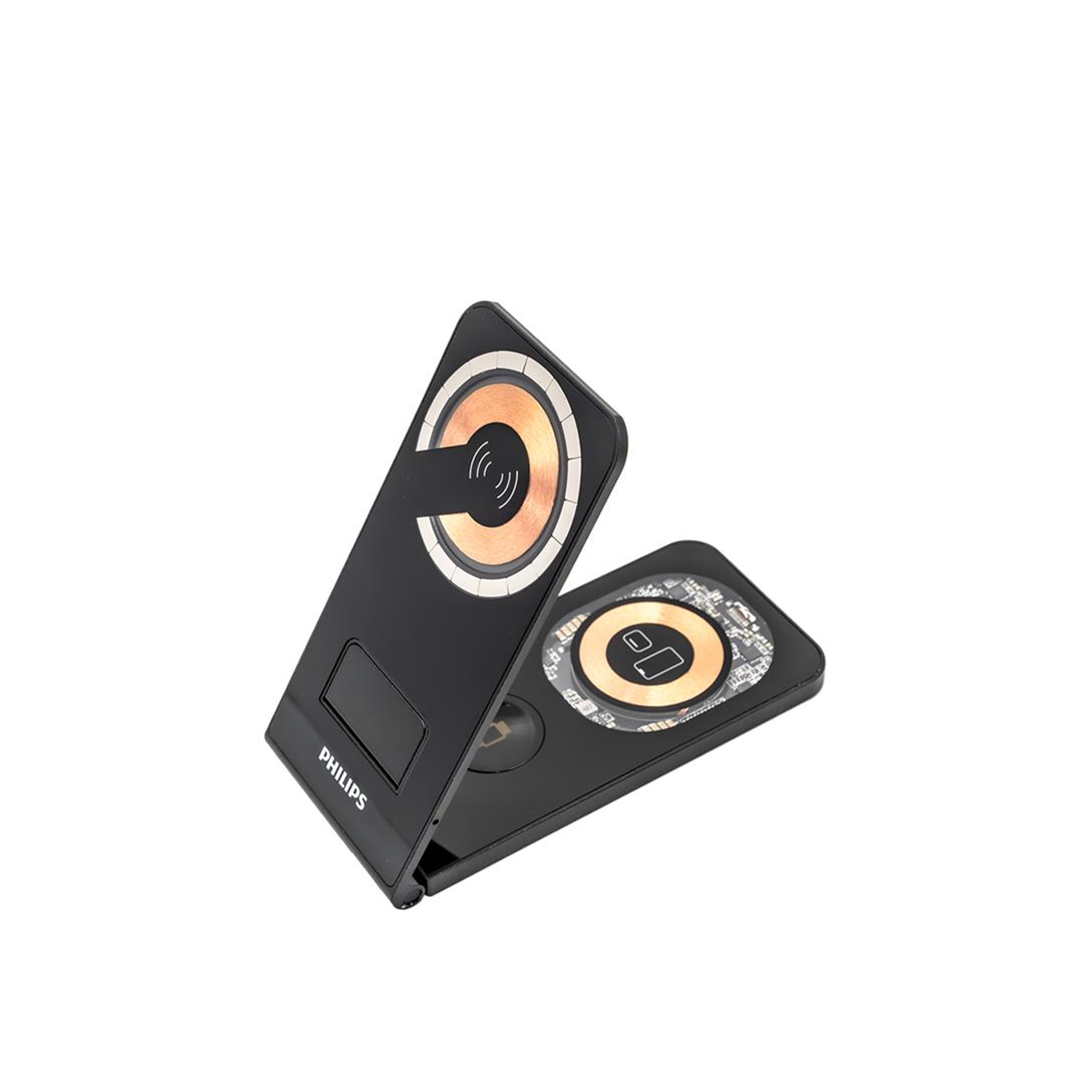 Bộ sạc không dây mạnh mẽ với công suất 15W, giúp bạn sạc điện thoại di động nhanh chóng. Chân đế có khả năng gập lại và được trang bị đèn báo sạc màu xanh lam, tăng thêm tiện ích và tính thẩm mỹ cho không gian làm việc của bạn.