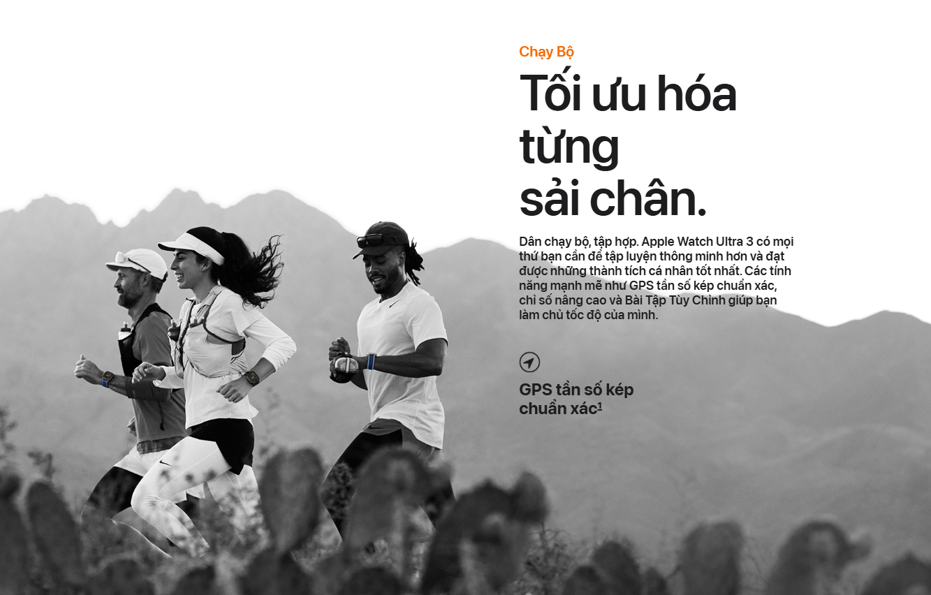 Với watchOS 26, Apple Watch Ultra 3 mang đến hàng loạt tính năng thể thao chuyên nghiệp, giúp người dùng theo dõi các chỉ số nâng cao trong nhiều môn thể thao khác nhau: