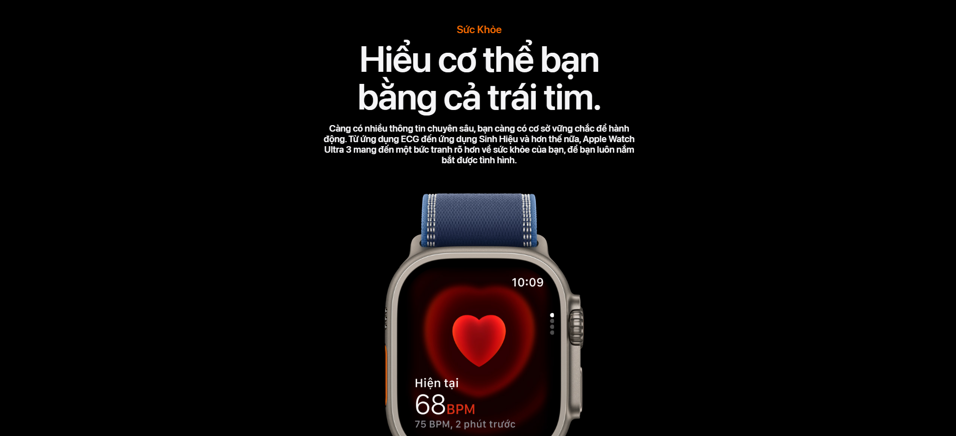 Ngoài ra, Apple Watch Ultra 3 cũng hỗ trợ các tính năng sức khỏe tiên tiến như nhịp tim không đều, oxymeter, ECG và ngưng thở khi ngủ, giúp bạn dễ dàng theo dõi và cải thiện tình trạng sức khỏe của mình.
