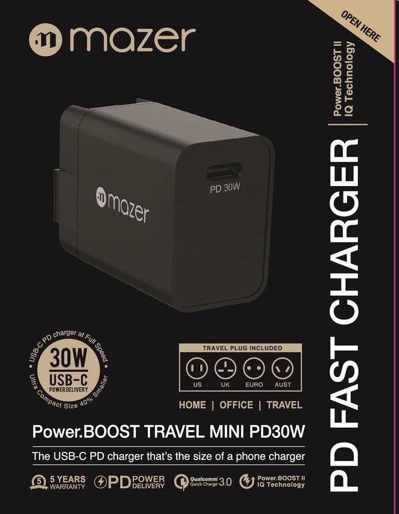 Mazer EnerG WALL.MINI PD30W USB-C Charger (100-240V)