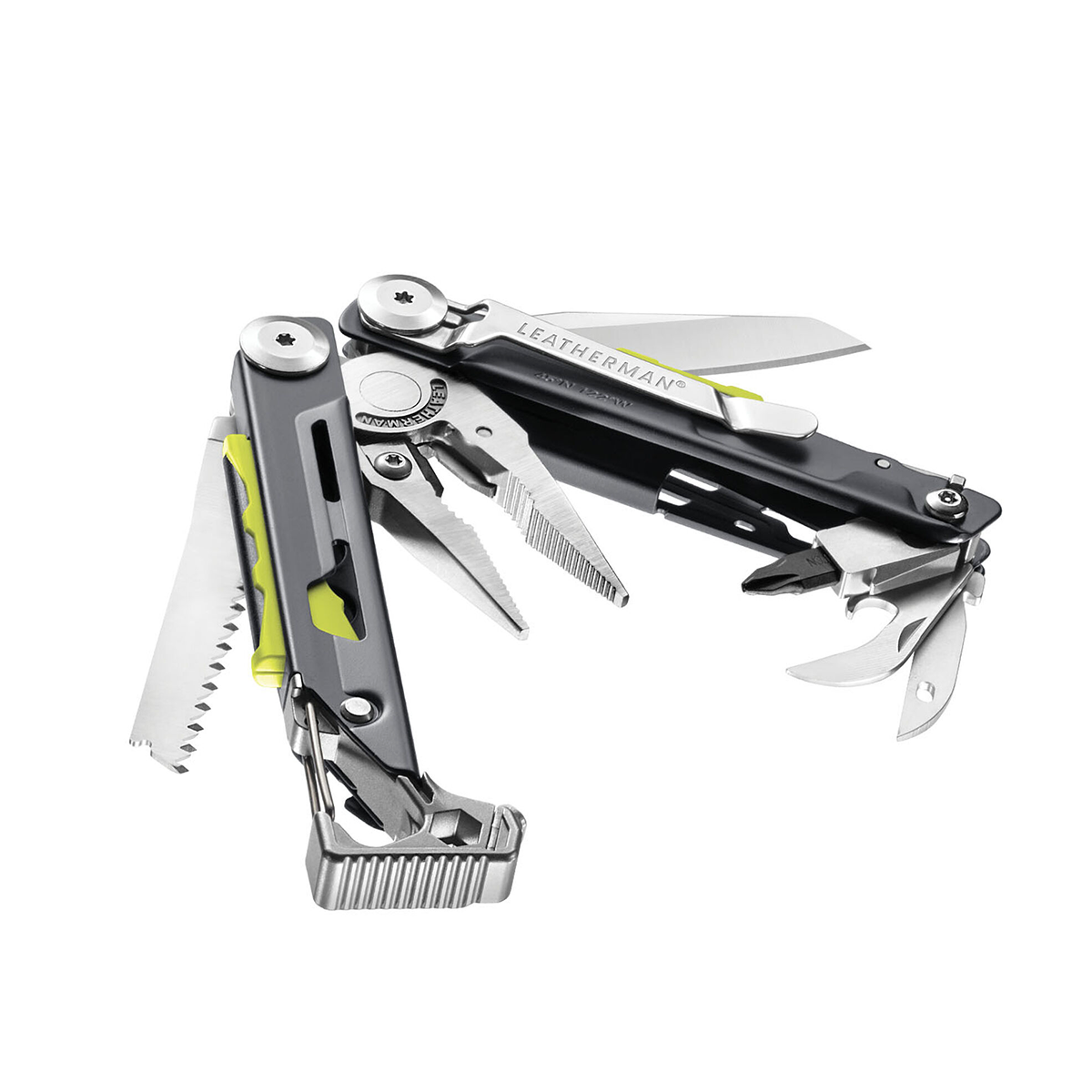 Phù hợp hoàn hảo cho mọi cuộc phiêu lưu, Signal® kết hợp 19 công cụ hữu ích thành một kích thước nhỏ gọn, 4,5 inch. Đa công cụ này sẵn sàng cho bạn những điều bất ngờ với thanh sắt khởi động lửa, lưỡi dao kết hợp 420HC và còi khẩn cấp. Siết chặt thiết bị bằng trình điều khiển bit có thể tùy chỉnh và cố định cọc lều của bạn bằng búa tích hợp. Tăng tốc và tiến xa hơn với Leatherman Signal®. Lớp phủ DLC trên thép không gỉ và màu đen. Cerakote ™ dành cho các màu nâu coyote, xanh nước biển, đỏ thẫm, xám và coban. Bao gồm vỏ bọc nylon.