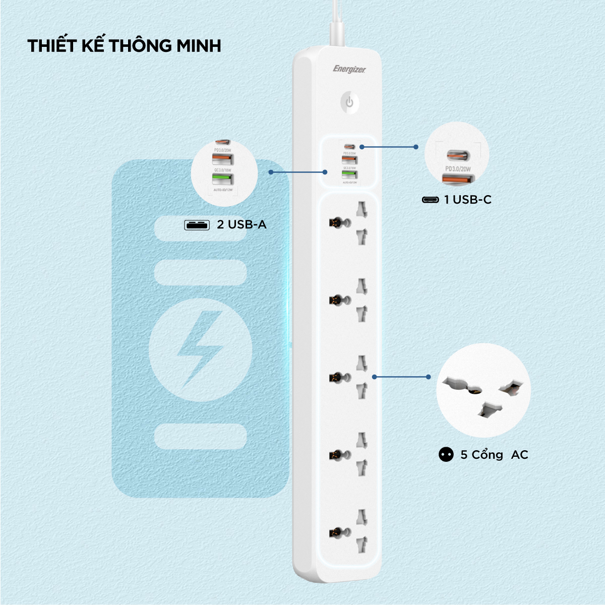 Thiết kế thông minh tiện lợi sạc đa thiết bị
