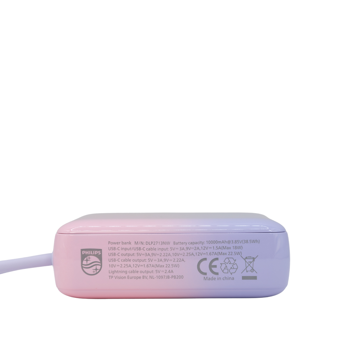 Pin sạc dự phòng nhỏ gọn 10.000mAh Philips DLP2713 - Kèm cáp Type-C và Lightning