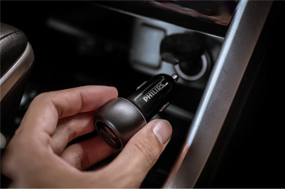 Tẩu sạc Philips DLP2552 Max 38W 1PD+1QC dùng trên ô tô